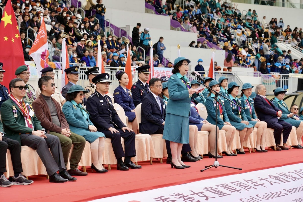 【點新聞報道】「香港女童軍周年大會操2024-25」今日(23日)於旺角大球場舉行,吸引近5,000名女童軍、老師、家長、親友、少數族裔朋友及市民出席。香港女童軍總會會長梁唐青儀女士親臨主禮,並接受女童軍旗隊及檢閱步操隊伍敬禮。多名政府官員、制服團體長官、女童軍總會副會長均有出席。
