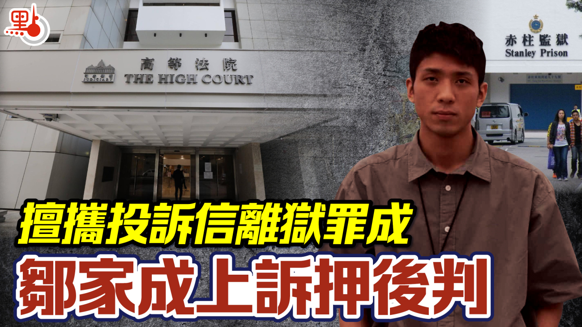 【點新聞報道】因涉「35+顛覆政權案」正服刑的鄒家成,在前年還押期間透過女助理律師寄出申訴專員公署投訴信。兩人經審訊被裁定「將未經授權的物品攜離監獄」罪成,分別被判監禁3天及罰款1800元。二人不服上訴,案件昨(25日)在高院審理。法官張慧玲觀看案發片段後,質疑兩人交接文件時似乎有所掩飾和可疑,押後裁決。