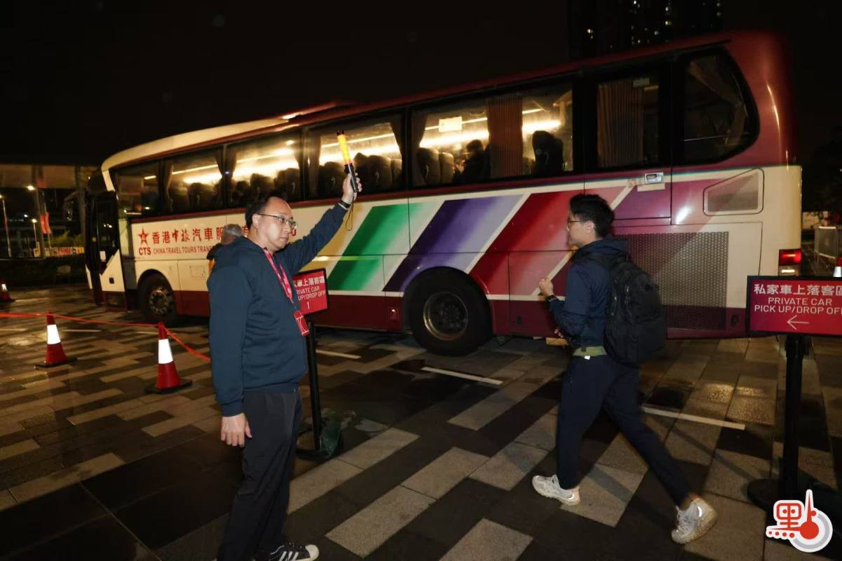 賽事進入第二日,比賽於5日晚間開始,並持續至6日凌晨約01時22分才全部結束。為方便觀眾離場,主辦方特別安排接駁巴士疏導人流。點新聞記者現場觀察到,觀眾散場後步行至啟德青年運動場旁,搭乘接駁巴士前往旺角朗豪坊。現場共安排四架巴士,首班車於凌晨1時40分左右開出,有效緩解了散場時的交通壓力。