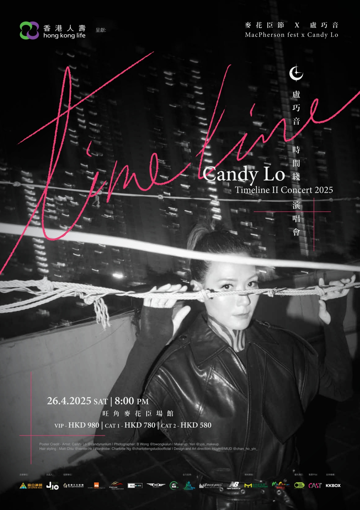 - 票價:HKD980(VIP)/780/580元