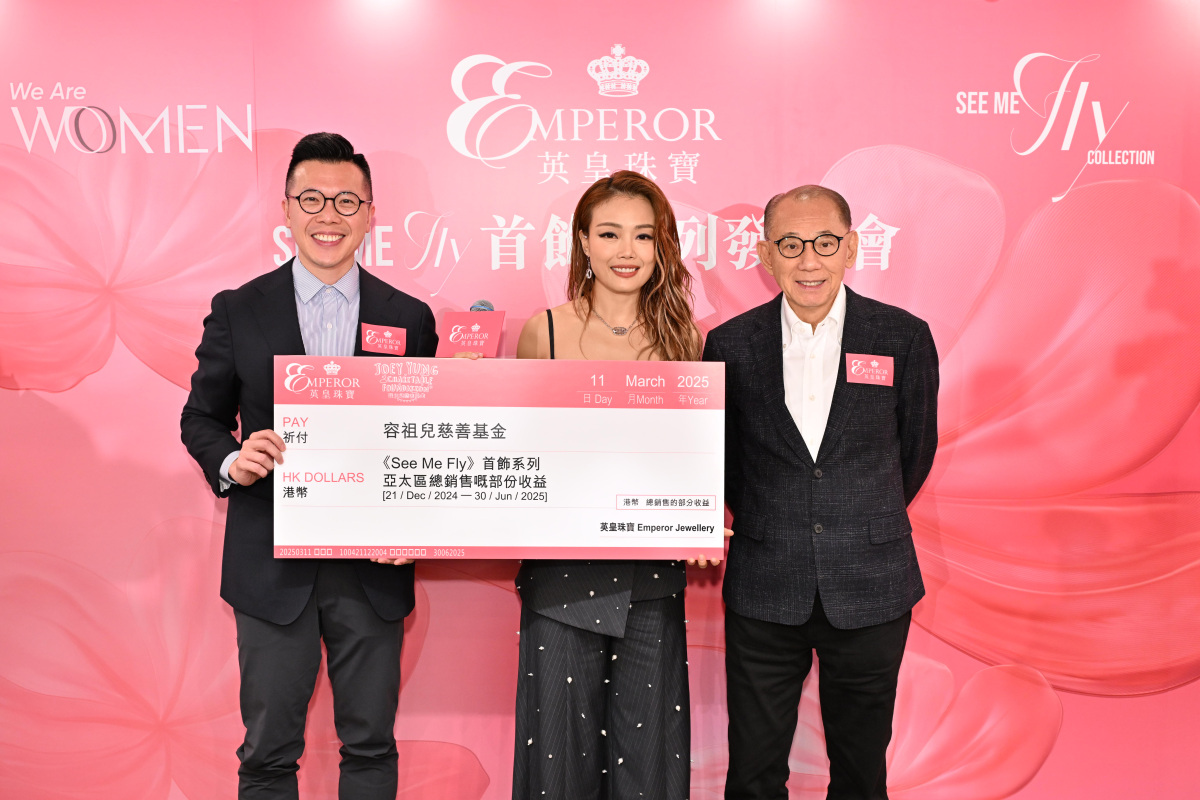 英皇珠寶為答謝Joey,由英皇鐘錶珠寶行政總裁梁浩昌代表向容祖兒慈善基金捐贈支票,並由創辦人Joey接收,英皇珠寶將捐出於2024年12月21日至2025年4月30日期間亞太區「See Me Fly」系列總銷售的部分收益,以為容祖兒慈善基金的受惠兒童和家長於英皇戲院安排一次難忘的親子慈善電影觀賞會。除此以外,英皇珠寶更宣布容祖兒JY6國際歌迷會會員將享有高達八折的「SEE ME FLY」獨家優惠。