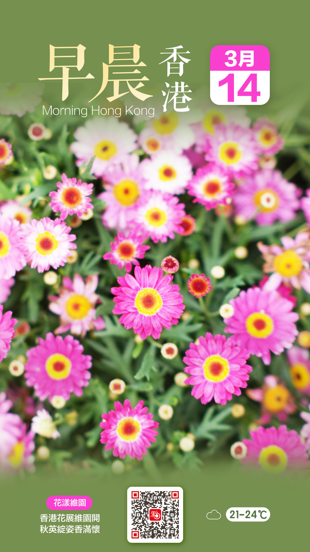 【點新聞報道】香港花卉展2025於今日(14日)至23日在維多利亞公園盛大舉行,主題為「綻放英姿」,以生命力旺盛的秋英(大波斯菊)為主題花。秋英花色絢麗,花瓣輕薄如紗,風中搖曳,成為展覽的焦點。花香馥郁,讓參觀者每一步都能感受到撲鼻的清香。