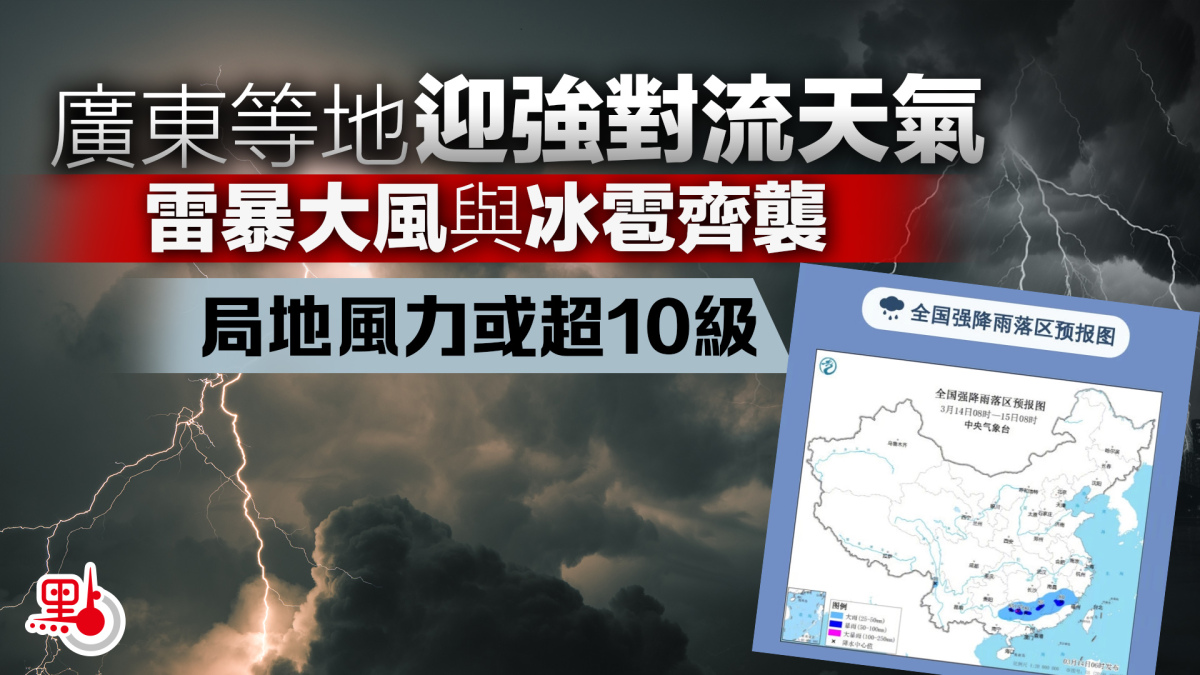 廣東等地強對流天氣來襲 雷暴大風、冰雹齊發