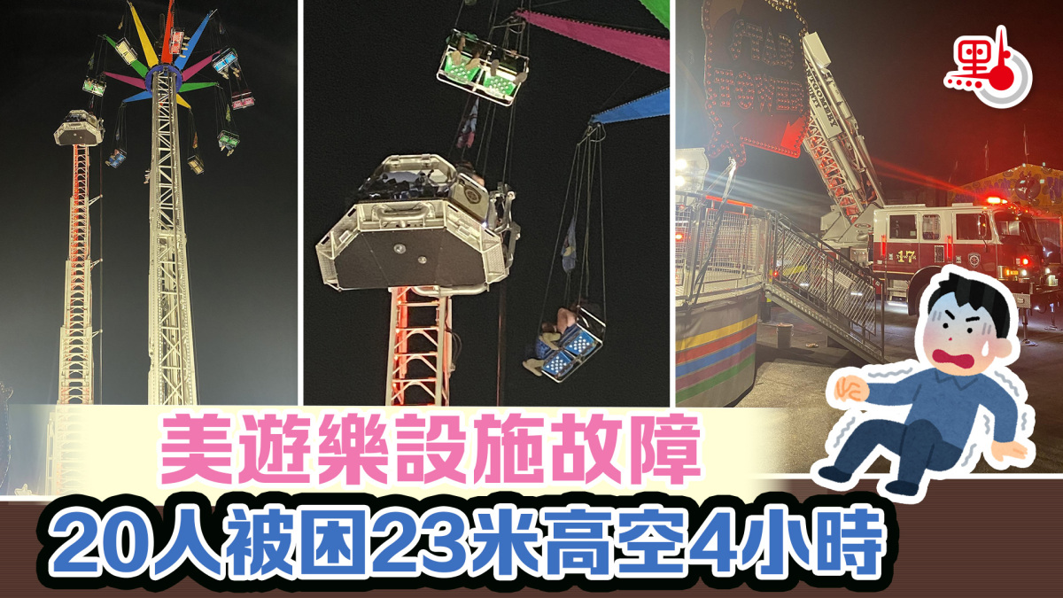 【點新聞報道】據外媒報道,近日在美國田納西州蒙哥馬利郡舉行的嘉年華活動上傳出機動遊戲設施故障事件。廿名遊客被困在近23米的高空中,歷經4小時才獲救,所幸是無人員受傷。