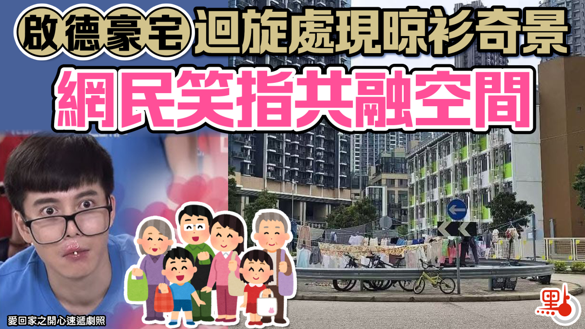 【點新聞報道】啟德豪宅附近出現「奇景」!網上流傳一張相片,可見啟德私宅外的迴旋處違規曬晾衣物,相中一邊是私樓「天寰」,一邊是過渡性房屋項目「啟福居」及德朗邨等,形成極大反差。