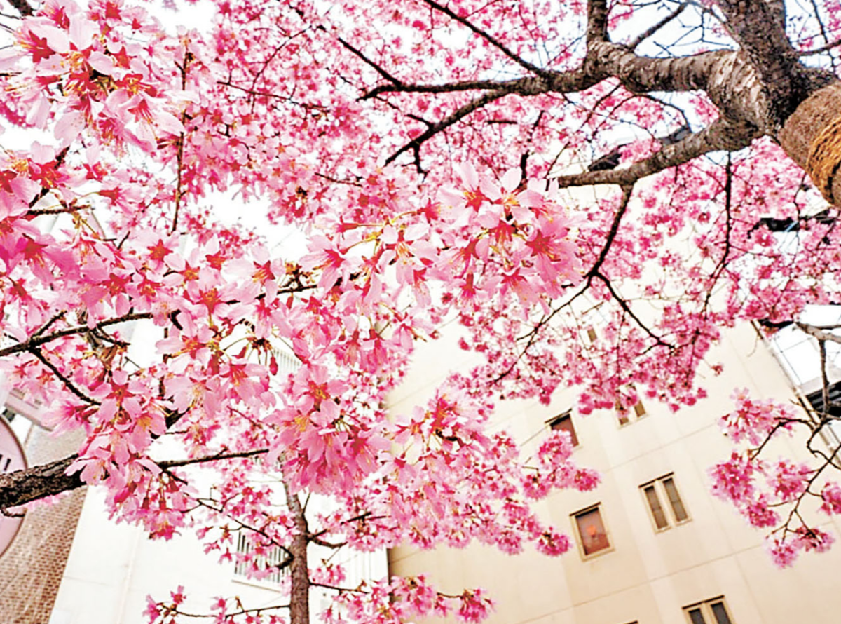 阿龜櫻其實是寒緋櫻與豆櫻雜交而成的櫻花品種,是在英國培植出來。花瓣呈淡紅色,如多數寒櫻一樣向下盛開,樹就算長高也大概只有3米,是日本人在自家庭園也能輕鬆容納並栽種的品種。