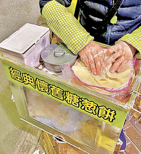 - 歷史情懷:糖蔥餅大約在30年代傳入香港,50、60年代成為本港代表的街頭小食之一。販賣糖蔥餅的小販,會孭着一個大鐵箱,鐵箱有一塊玻璃,讓人看到放在入面的糖蔥。當有人買的時候,就會從箱中拿出糖蔥,灑上椰絲和芝麻花生粉,再用一塊白麵皮包好。吃起來香、酥、脆兼備。