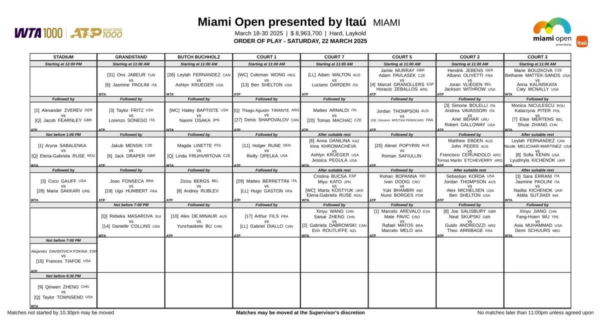 【點新聞報道】據央視新聞報道,WTA1000邁阿密站第五日賽程出爐,女單上半區第三輪開打。多位中國選手出戰,鄭欽文將在明早(3月23日)8時30分後對陣湯森德。