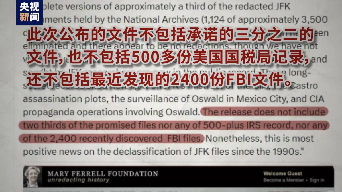 儘管特朗普強調公布全部檔案不做任何塗改,但此次公布內容並不包括承諾的三分之二,也不包括500多份美國國稅局紀錄,還不包括最近發現的2400份FBI文件。公布的文件包括FBI的報告、CIA的情報、證人證詞以及其他美國政府內部材料。其中內容沒能推翻或坐實美國政府一直堅持的飽受爭議的「精神不太穩定的退伍老兵獨狼作案」,但也確實爆出了一些此前不為人知的內部矛盾。