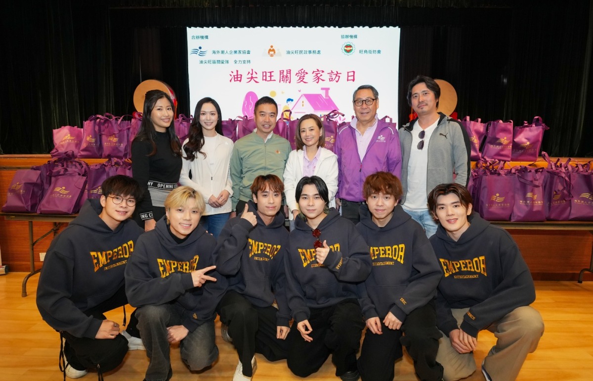 【點新聞報道】海外潮人企業家協會與油尖旺民政事務處3月22日聯合主辦「油尖旺關愛家訪日」,多位藝人包括周家蔚、馮盈盈,以及英皇旗下六子洪助昇、黎展峯、及樂隊Locksmiths(開鎖佬)齊齊現身旺角,與義工團深入「劏房」戶派發福袋並送上關懷,展現親民一面。