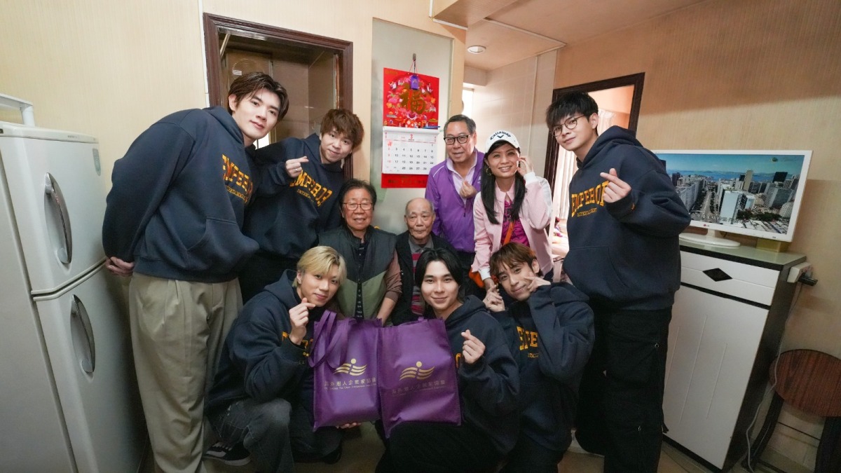 黎展峯則分享:「探訪時遇到一位年輕住戶,雖然生活艱難,但他眼神中卻充滿夢想。我向他分享自己的最新作品,希望鼓勵他只要肯努力,就能燃起心中的火,自我提升『免費升級』!」兩位暖男不僅與住戶輕鬆互動,更主動幫忙搬運物資,贏得現場義工及住戶一致好評。