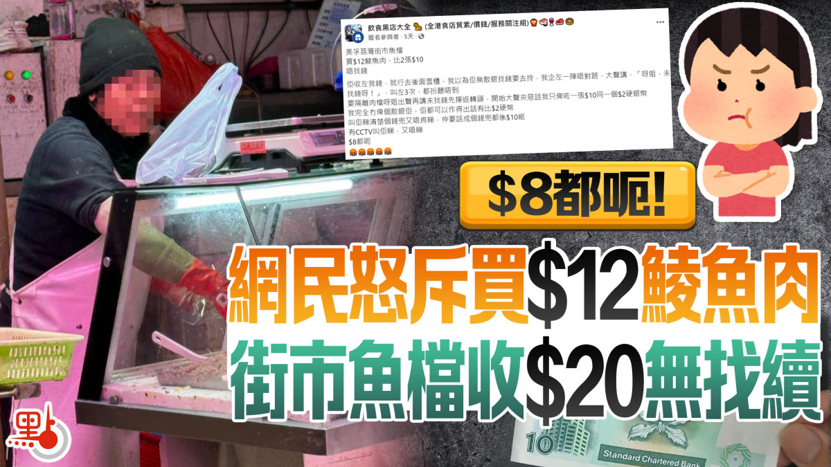 該名網民在fb群組「超市關注組」發帖講述事發經過,指日前到美孚荔灣街市某魚檔,買12元的鯪魚肉,向店員付上2張10元紙鈔,理應找續8元。不過,店員收錢後就行至後方雪櫃,樓主以為對方「無散銀找,要去拎」,但過了一會發現唔對路,於是大聲講「阿姐,未找錢呀!」。然而對方卻當耳邊風,「叫咗3次,都扮聽唔到,要隔離肉檔呀姐出聲再講未找錢先擰返轉頭」。