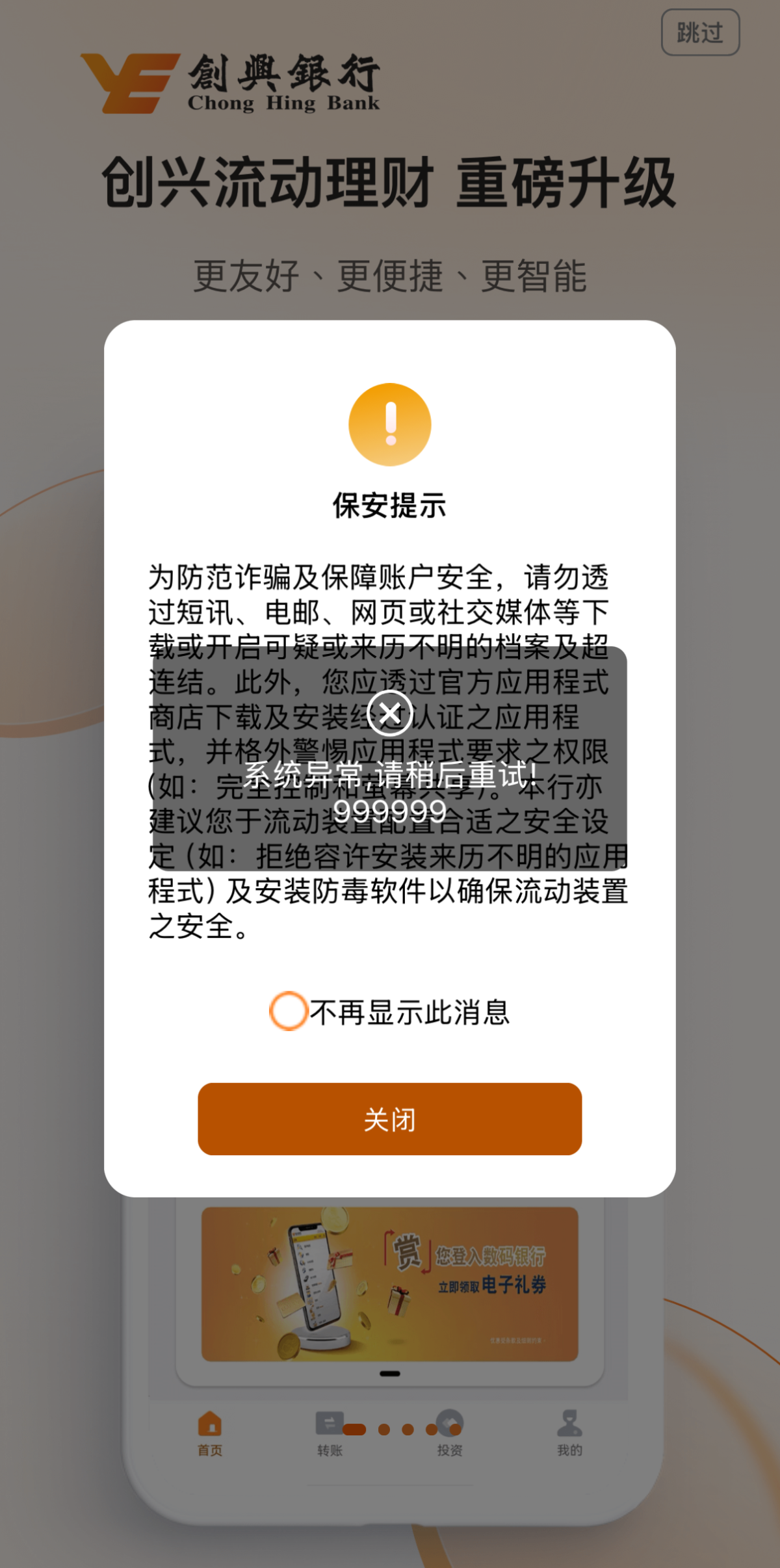 【點新聞報道】創興銀行系統今午(26日)懷疑故障,網頁未有顯示任何內容,手機App則顯示「系統異常」。有媒體嘗試致電創興銀行不同分行服務熱線,惟全部未能接通。