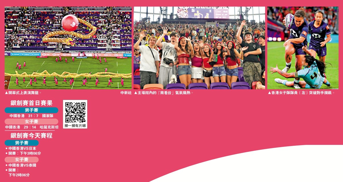 一連三天的「2025年國泰/滙豐香港國際七人欖球賽」昨天(28日)隆重開幕,作為啟德體育園開幕後首項國際級別體育盛事,主場館首日共有33735人入場觀賽,感受這場國際體育盛事的熾熱氣氛。首日賽事焦點之一的「Melrose銀劍賽」,中國香港男、女子七欖隊同取開門紅,女子隊先以29:14輕取哈薩克斯坦,男子隊隨後以31:7反勝國家隊。而兩場賽事之間則舉行賽事開幕式表演,港隊成員賽後盛讚新場地感覺煥然一新,現場氣氛依然熱鬧。