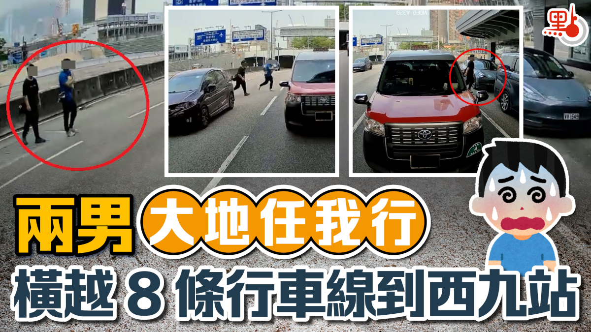 【點新聞報道】亂過馬路,隨時搞出人命!兩名男子昨日(9日)被拍攝到在柯士甸道西橫越8條行車線,前往高鐵西九龍站。