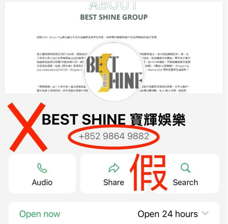 寶輝今日(11日)聲明指出,近日發現有騙徒採用電話號碼:(852) 98649882冒充公司之對外WhatsApp號碼 ,並在其假冒號碼WhatsApp個人圖像上使用公司的商標企圖騙取市民購買包括但不限於「周杰倫《嘉年華世界巡迴演唱會2025——香港站》」及其他演唱會門票,藉以蒙騙購票市民金錢。