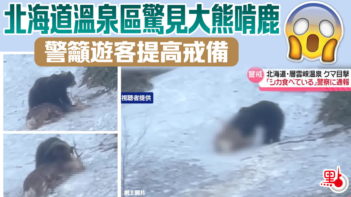 【點新聞報道】日本北海道層雲峽溫泉區最近有人目擊熊隻獨自出沒覓食,正大口啃咬着鹿隻,影片中可以清楚看到熊咬住鹿的樣子。由於熊隻可能會再回來,警方提醒遊客外出要提高戒備。