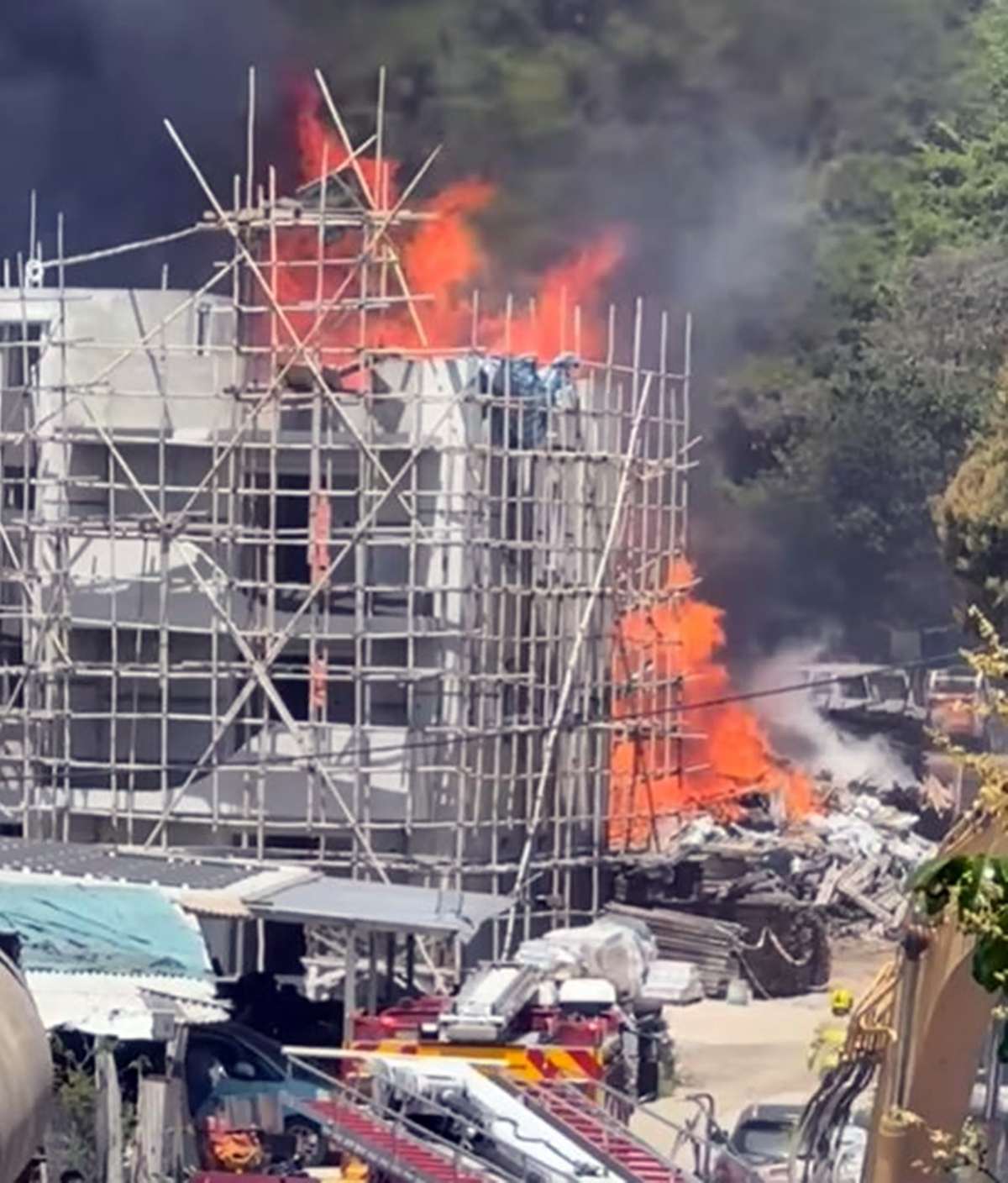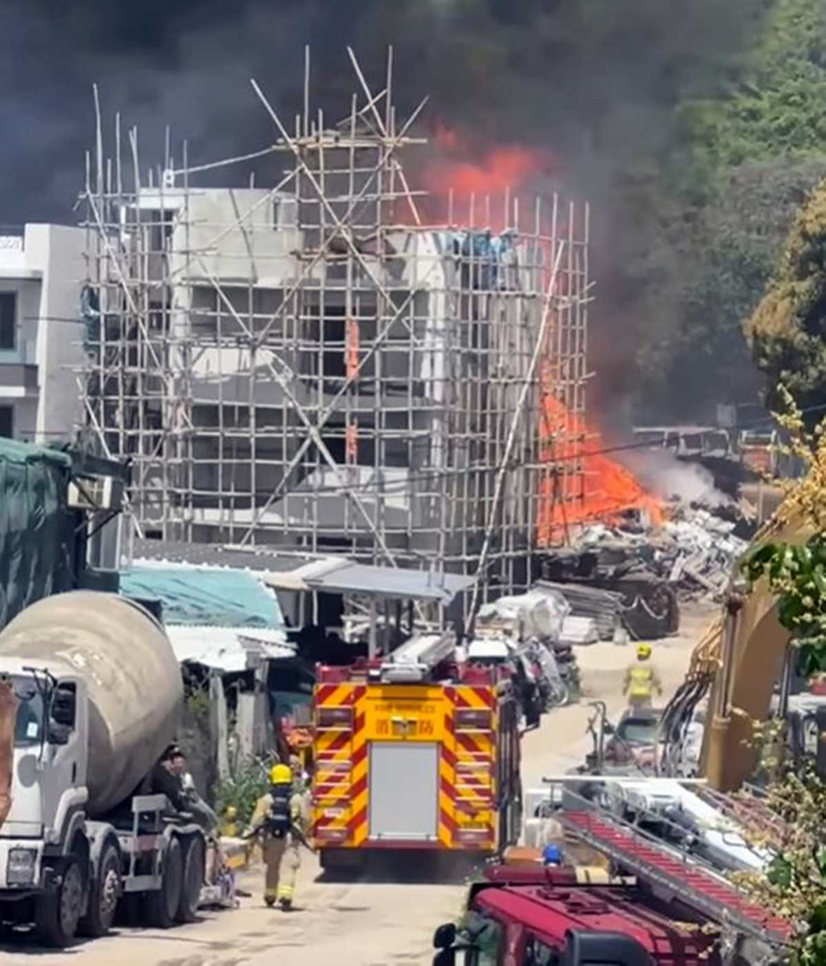 【點新聞報道】今日(15日)早上約10時55分,警方接獲多個電話報案,指屯門青磚圍路一幢興建中的三層高村屋起火。消防到場證實村屋外牆棚架起火,烈焰沖天,火勢相當猛烈,大量濃煙席捲半空。消防員出動一條喉及一煙霧隊撲救,至上午約11時44分將火救熄。其間一名年約60歲男子手部燒傷,清醒被送往屯門醫院治理。警方及消防正調查起火原因。
