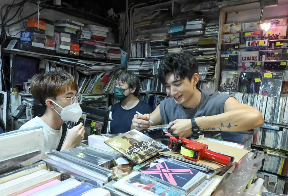 歐信希也是第二年推出專屬產品,亦親自到唱片店買下不少產品,在店裏遇上粉絲購買他的《家傳之寶》7吋薰衣草紫膠唱片,粉絲們熱情地要求和歐信希影合照。
