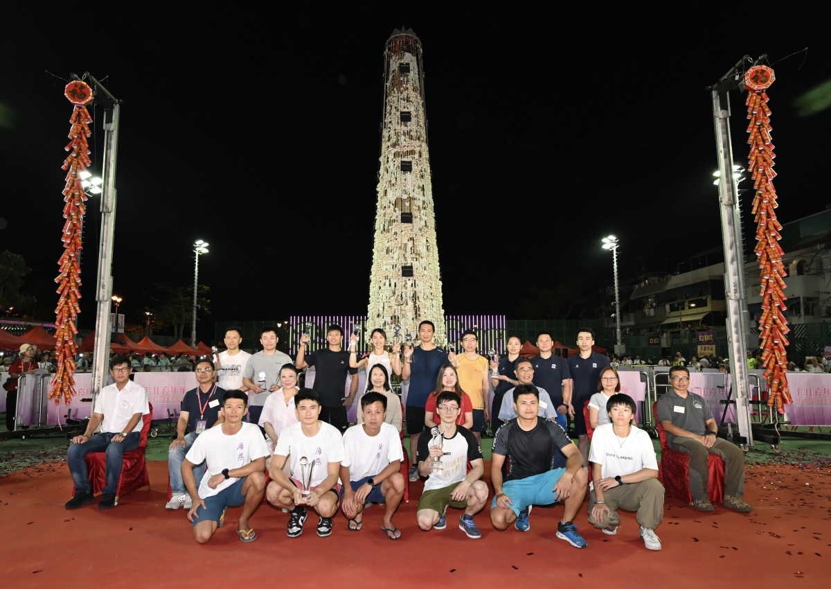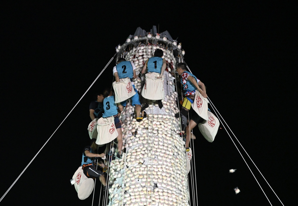 【點新聞報道】「包山嘉年華2025」壓軸項目「搶包山決賽」今日(6日)凌晨在長洲北帝廟遊樂場足球場舉行。今次比賽中,12名選手皆在限定時間內摘取包山上的平安包並返回地面,無人被DQ。