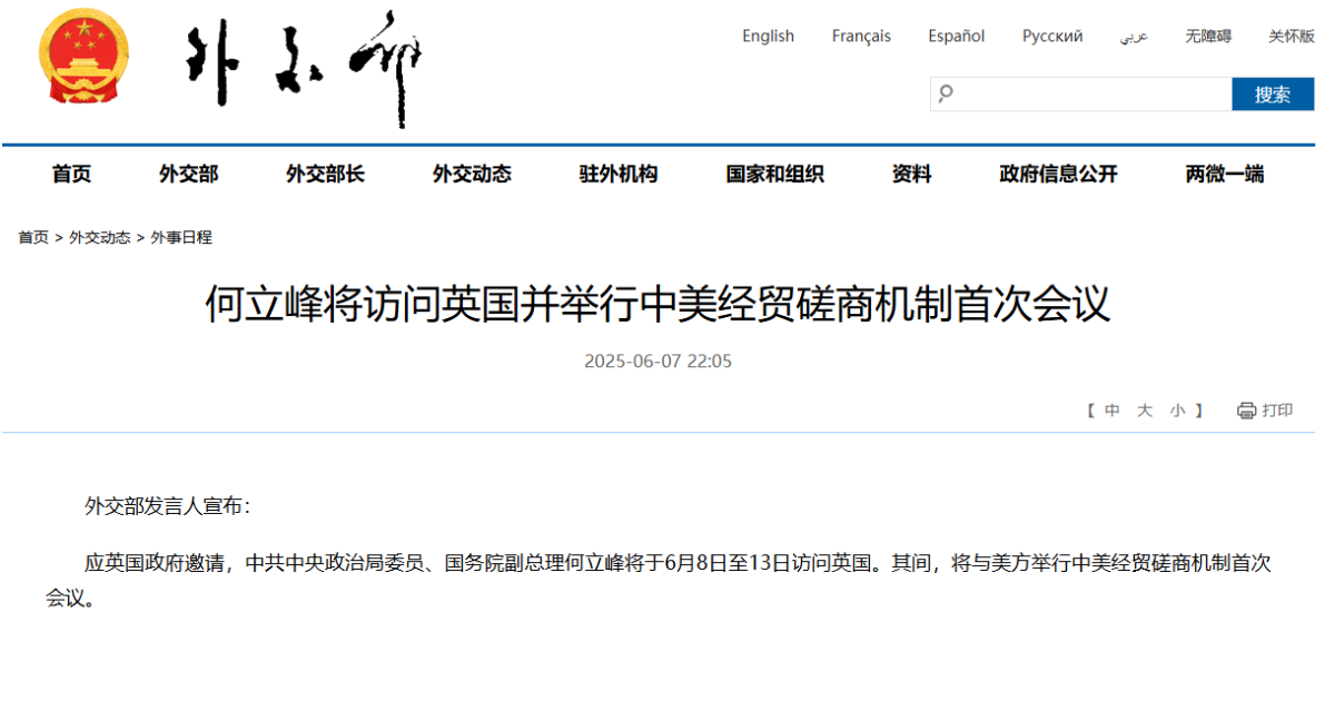 【點新聞報道】外交部網站今日(7日)消息,外交部發言人宣布,應英國政府邀請,中共中央政治局委員、國務院副總理何立峰將於6月8日至13日訪問英國。其間,將與美方舉行中美經貿磋商機制首次會議。