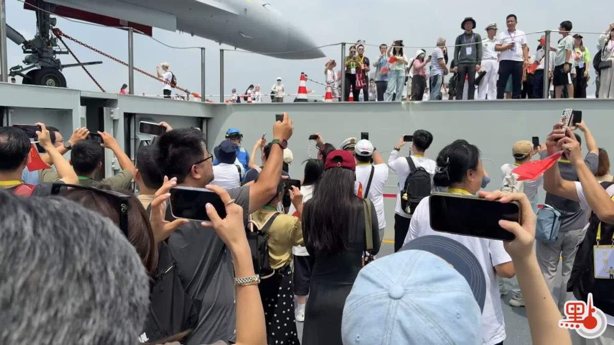今天在山東艦上令我印象最深刻的就是訪問市民的環節,每一位和我分享感受的市民第一句話就是「很開心、很激動」。而最令我感到驚喜的是,在隨機的採訪中,竟偶遇到了一位家鄉是山東青島的香港市民!她用粵語告訴記者,自己在香港已經生活了十年多,這次真的很高興能來到山東艦,她在山東的親友都十分羨慕她。雖然有點「凡爾賽」,但她的開心特別有感染力,連我也忍不住替她感到高興。