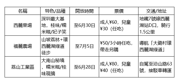 想好去哪家摘了嗎?帶娃去大棠山找大顆糯米糍,還是和另一半去西麗嘗第一口鮮?記得噴驅蚊水!去福麗農場記得和荔枝林拍照!摘的時候輕拿輕放~這份攻略收好,周末就約起吧!