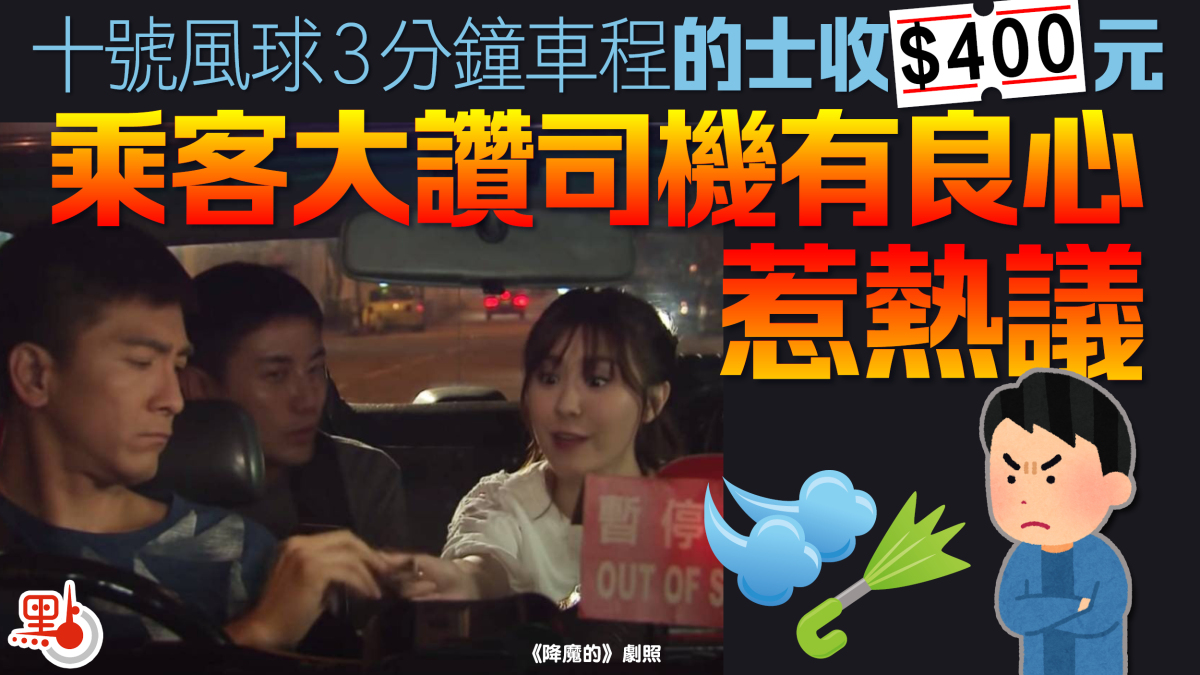 【點新聞報道】在「韋帕」颱風襲港,十號風球期間,的士頓成為「搶手貨」。有港男在社交平台發文,分享當日乘搭的士的經歷,指從九龍宋王臺港鐵站前往聖德肋撒醫院(法國醫院),全程約3分鐘,車資為29元,另加371元附加費,合共400元,大讚司機「收得唔貴算有良心」。帖文旋即惹起熱議,有人質疑「好似曲線地講緊反話咁」。