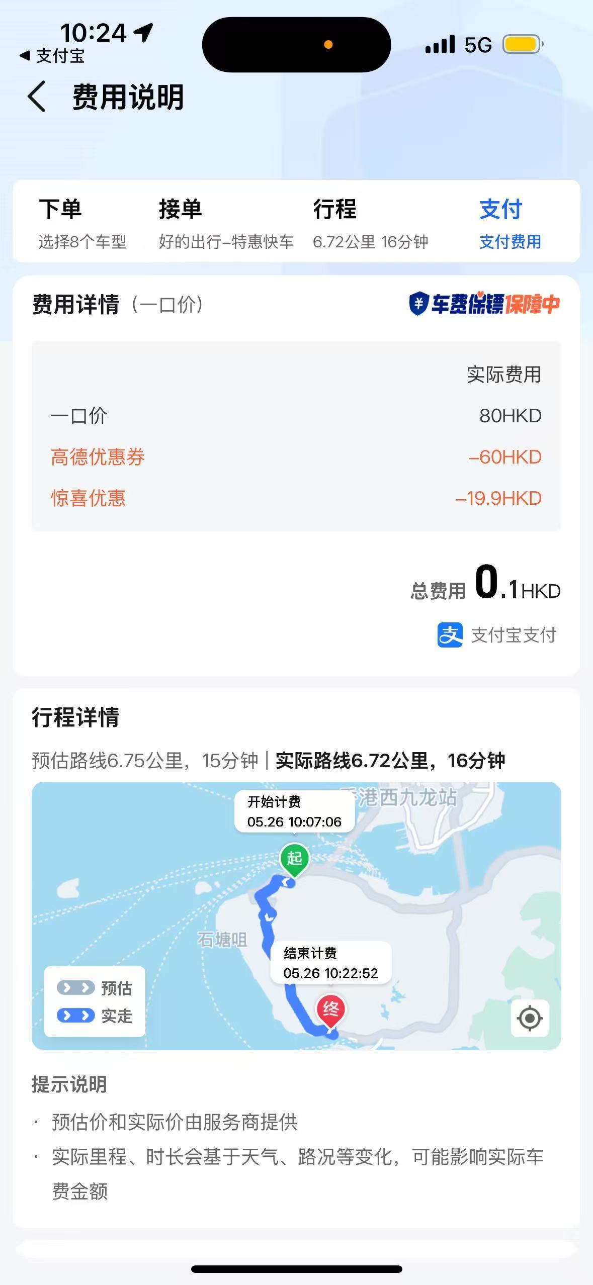 在香港,的士一般按錶收費,起步價為HK$29,其後每200米加收HK$2.1。短短十幾二十分鐘的路程,很容易就跳錶跳到近HK$100。不過,有不少的士App為吸引乘客,會不定期推出新用戶優惠、車資折扣、積分回贈等。例如高德打車推出$200優惠券包,滴滴出行更有每日5折優惠,配合使用可省下不少。
