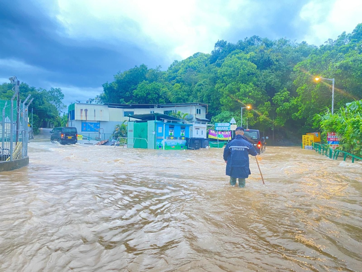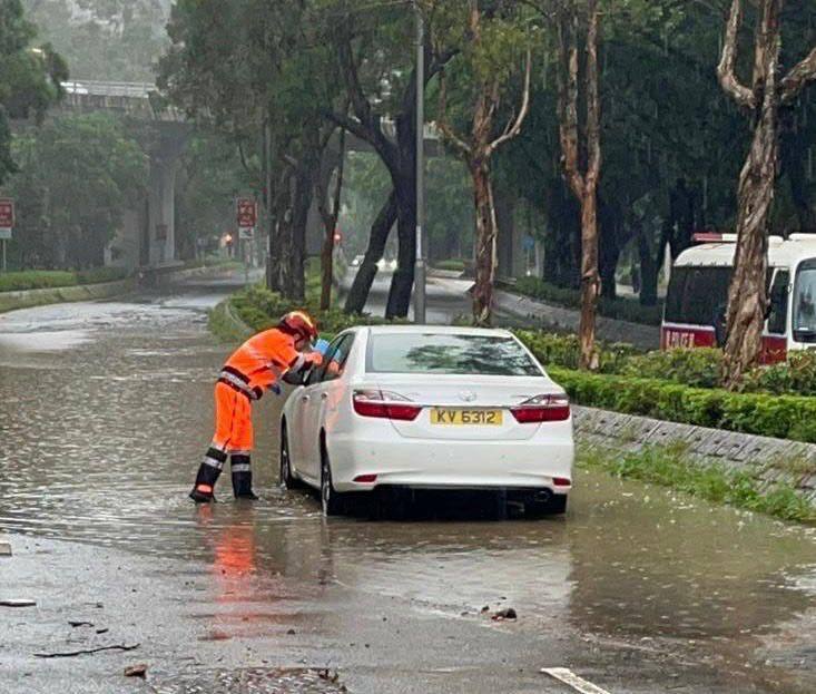 【點新聞報道】天文台今日(5日)清晨5時50分發出黑色暴雨警告,至下午5時05分改發黃雨警告信號,黑雨警告持續逾11小時。暴雨期間,多區發生水浸及有不少車輛被困。即使面對惡劣天氣,紀律部隊依然無懼風雨、謹守崗位。其中有車輛在風雨中死火,警員合力將車推至安全地方,化險為夷。