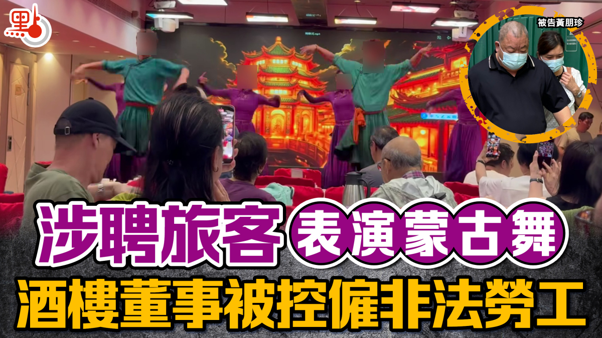 54歲被告黃朋珍報稱為「恒生糧道飲食集團有限公司」董事。根據控方指控,黃朋珍於今年7月28日涉嫌僱用六名來自內蒙古的旅客,包括張燕芝、姚瑤、安娜、潘楚晴、索昊宇及周鈺皓,為酒樓的表演者。