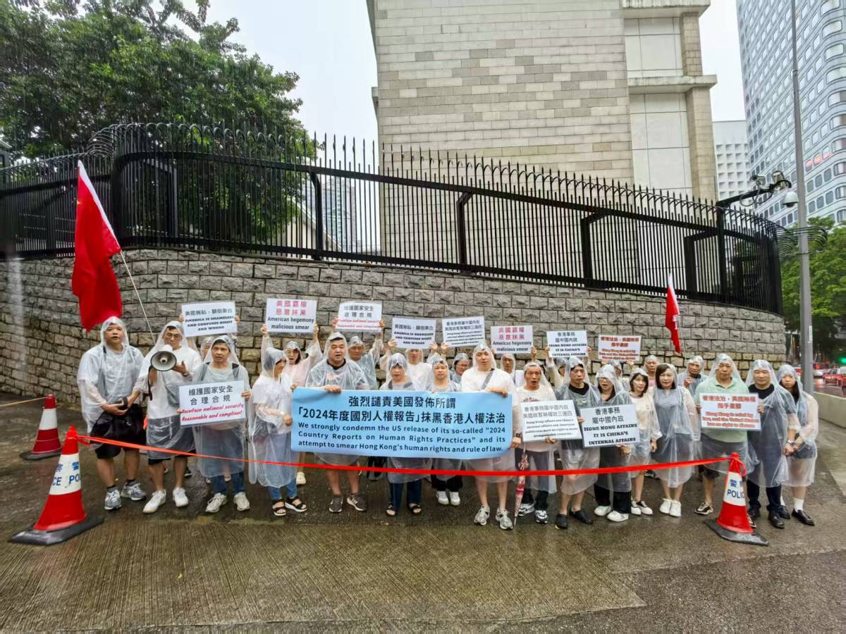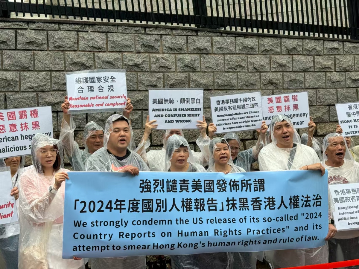 【點新聞報道】美國國務院近日發布所謂「2024年度國別人權報告」,岡顧事實真相,蓄意抹黑中國和香港特區人權法治狀況。香港多個市民團體今日(14日)到美國駐港澳總領館外請願,強烈譴責美國抹黑香港特區人權法治。