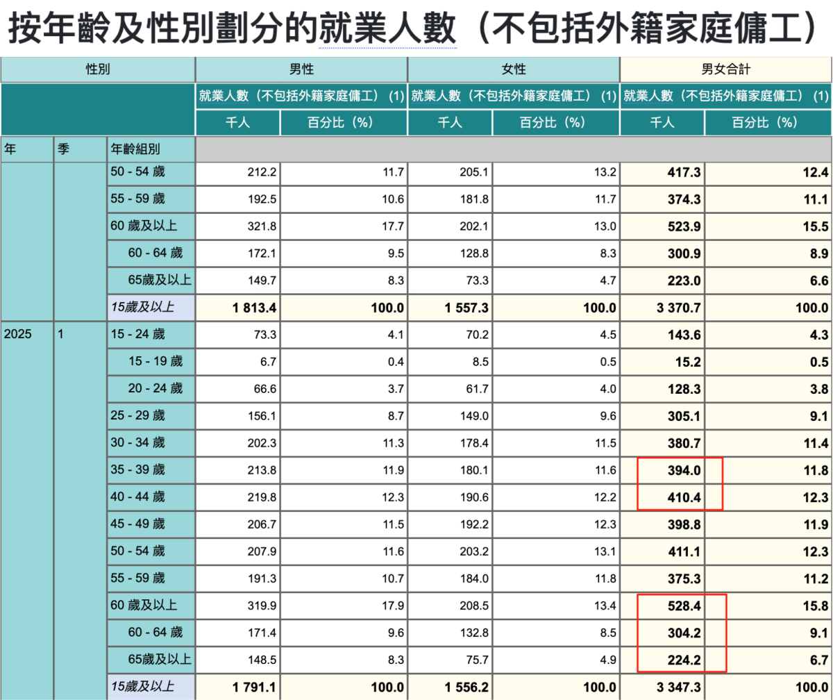 - 這個數字不僅超過了35至39歲(394,000人)及40至44歲(410,400人)群體,更成為全港各年齡段中最多的打工族群!