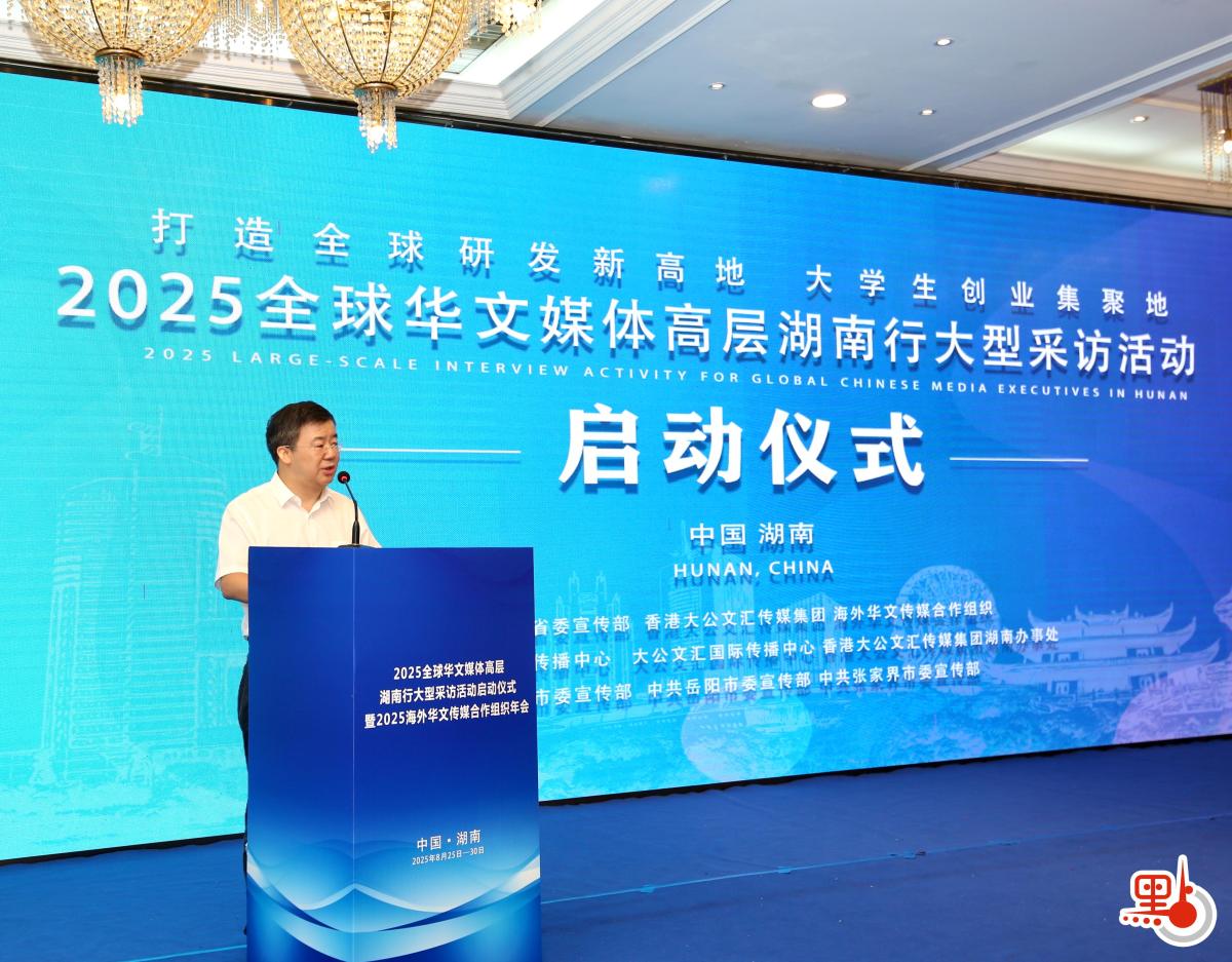 啟動儀式上,湖南省委宣傳部副部長、省政府新聞辦主任、省文明辦主任趙成新向採訪團授旗。8月26日至30日,海外華文傳媒合作組織的120人參會代表將分赴長沙、岳陽、張家界等地,以參觀考察、實地訪談等形式近距離了解湖南當地的經濟社會發展、風土人情和歷史傳統。本次採訪活動由湖南省委宣傳部主辦,海外華文傳媒合作組織和香港大公文匯傳媒集團聯合主辦。