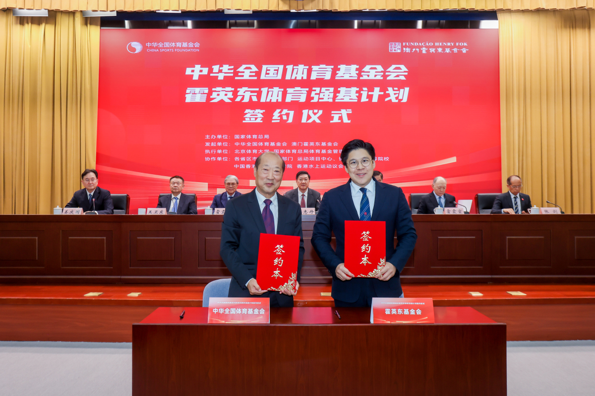 【點新聞報道】澳門霍英東基金會與中華全國體育基金會今日(8月29日)在國家體育總局簽署合作協議,共同發起「中華全國體育基金會霍英東體育強基計劃——全國基層教練員千人提升計劃(2025-2028)」。計劃總投入資金達4000萬元人民幣,將於未來四年重點培訓1000名基層教練,透過系統化培訓、國際交流及產學研資源整合,強化競技體育人才培養的基礎工程,助力推進體育強國建設。