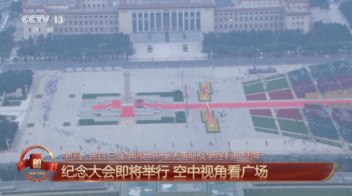 【點新聞報道】紀念中國人民抗日戰爭暨世界反法西斯戰爭勝利80周年大會即將舉行。今日(9月3日)早晨,記者乘坐直升機,沿北京中軸線,空中拍攝紀念大會現場。