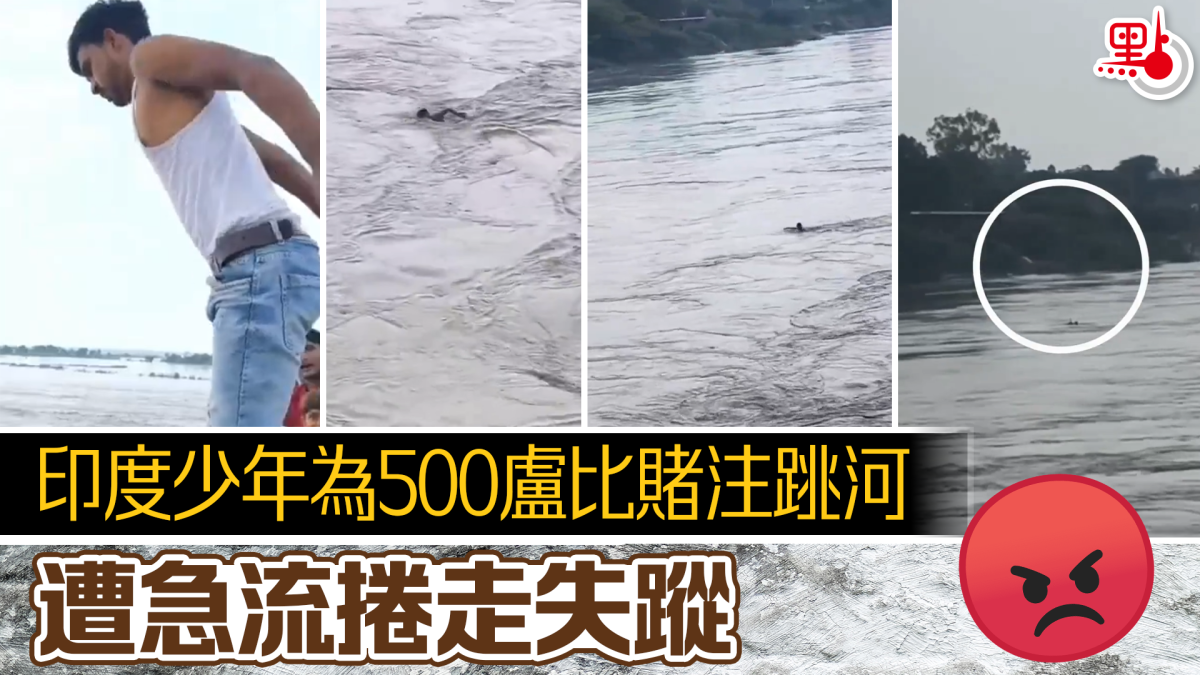 【點新聞報道】近日網上瘋傳一段影片,印度一少年為贏得500盧比(約40港元)賭注,冒險跳入暴漲的亞穆納河(Yamuna River)中,少年瞬間被急流捲走失蹤,驚恐畫面令網民憤怒。