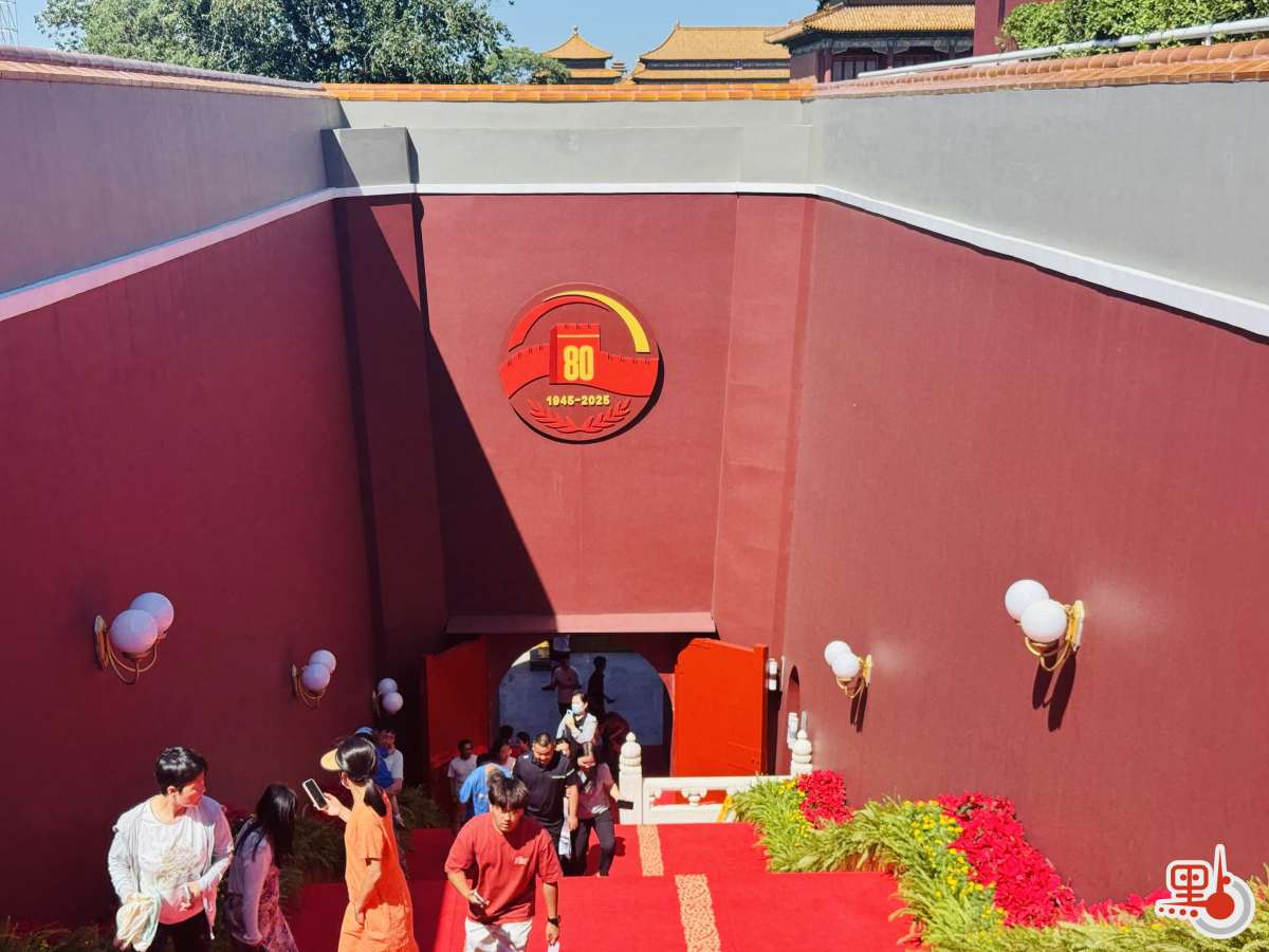 開放當日,天安門城樓仍舊保持着9月3日抗戰勝利80周年紀念大會的擺放樣式,前來參觀的民眾絡繹不絕。大家爭相在天安門正中央拍照留念,留下難忘的瞬間。