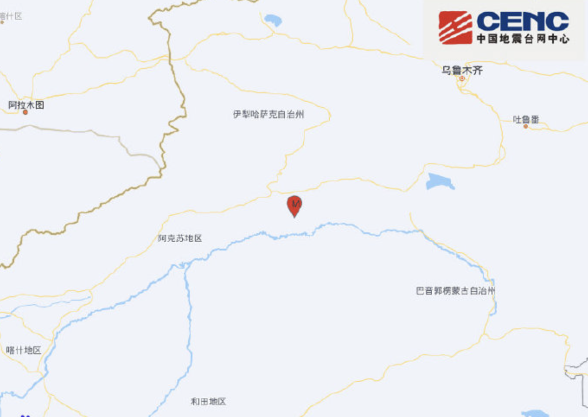 新疆阿克蘇地區庫車市發生3.7級地震。(中國地震台網)
