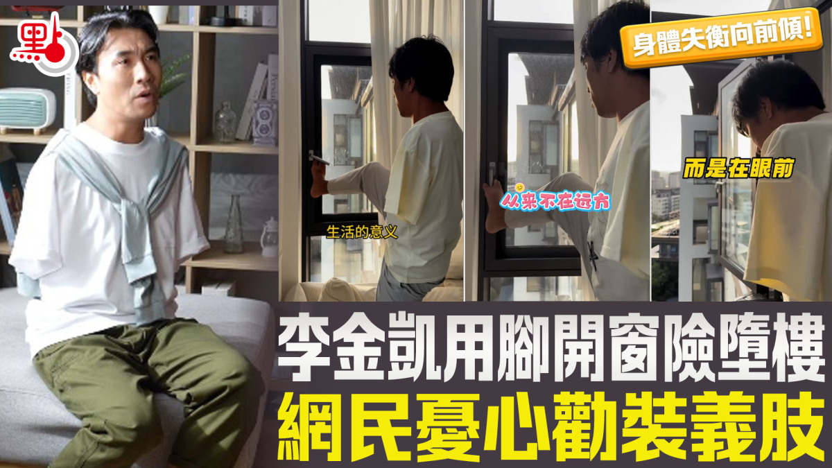 近日李金凱放假返雲南老家,他在影片留言:「這一抹家鄉的夕陽送給你 生活的美好從來不在遠方,而是在眼前。」片中見金凱走到梳化上開窗,當走近窗邊以腳向外推窗一刻,身體突然失平衡向前傾,幸好反應迅速保持平衡先避免慘劇發生!