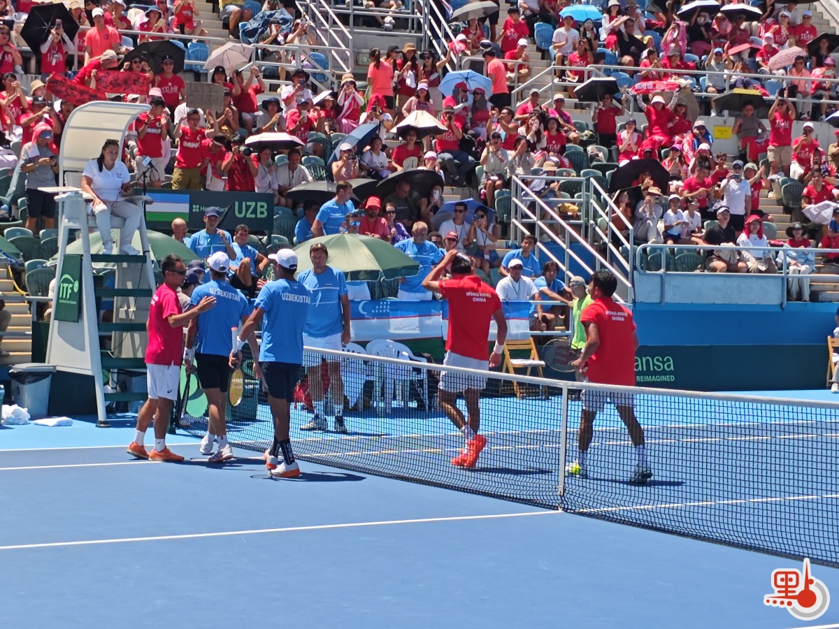 【點新聞報道】中國香港男子網球代表隊自周六(13日)起,一連兩日在維多利亞公園網球場出戰5場3勝制的台維斯盃世界Ⅱ組賽事,與烏茲別克斯坦隊爭奪世界Ⅰ組附加賽資格。首日兩隊暫1∶1戰平,今日(14日)在維多利亞公園網球場續戰,最終以場數3∶1鎖定勝局,順利晉級世界Ⅰ組附加賽。
