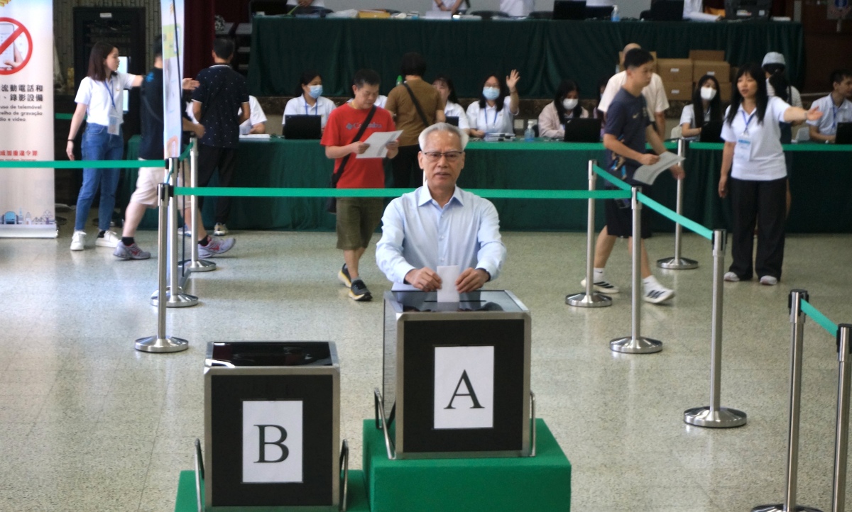 岑浩輝代表澳門特區政府感謝每位行使投票權的選民,向全體選務人員、參與選舉相關工作的公務人員、保安部隊人員致以敬意,並對借出投票場地的學校、為選民提供便利措施的機構表達謝意。