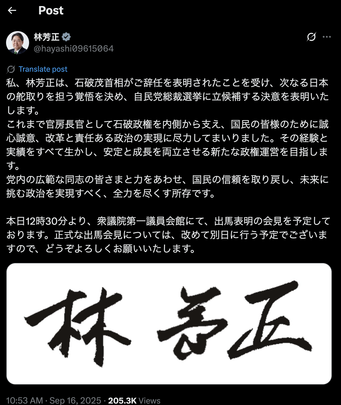 日本內閣官房長官林芳正今日亦在社媒宣布,有意參加即將舉行的自民黨總裁選舉。共同社報道,林芳正會在下午召開記者會,宣布參加選舉。前經濟安全保障擔當大臣小林鷹之亦會在下午宣布參選。