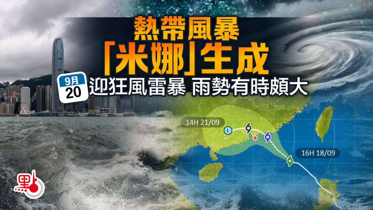 【點新聞報道】一號戒備信號現正生效,並將於今日(18日)維持。天文台表示,位於南海東北部的熱帶低氣壓已增強為熱帶風暴,並命名為米娜。