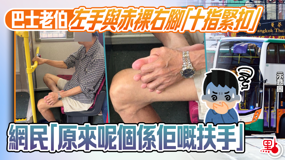 港男於Threads上發相片並配文,「大家以後唔好坐關愛座」。事主在巴士上遇到該名穿人字拖的老伯,老伯坐在座位上將右腳架在左腿上,並將左手手指與右腳腳趾緊緊相扣,場面令人覺得十分不衞生。