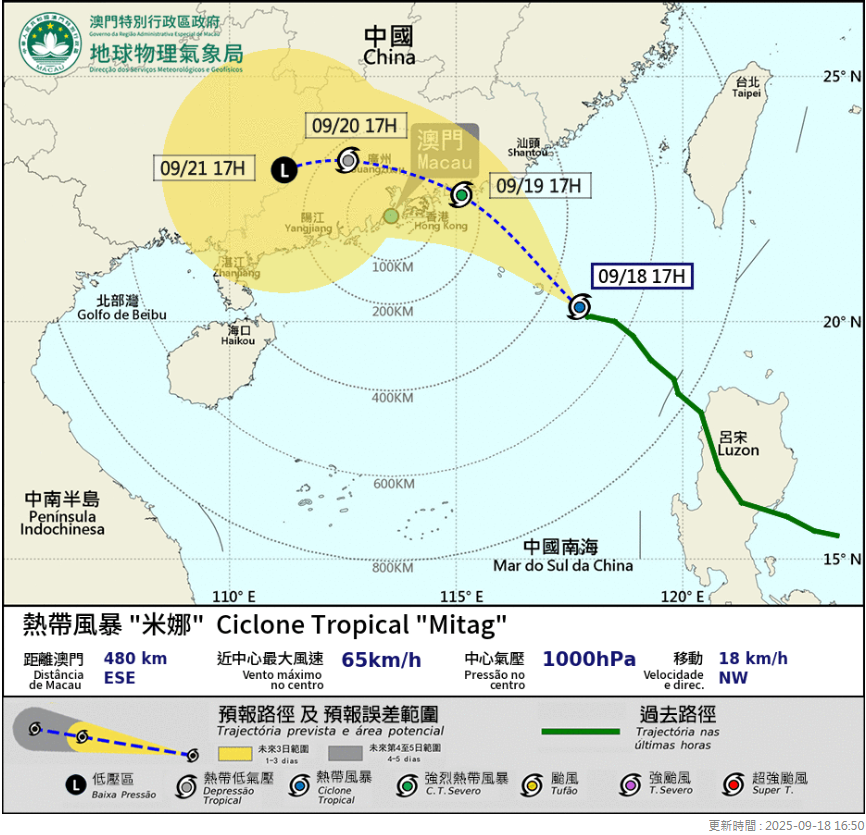 【點新聞報道】位於南海東北部的熱帶氣旋「米娜」增強為熱帶風暴。澳門今日(18日)凌晨發出一號風球,預計明日(19日)清晨至早上改發三號風球機會為中等至較高。
