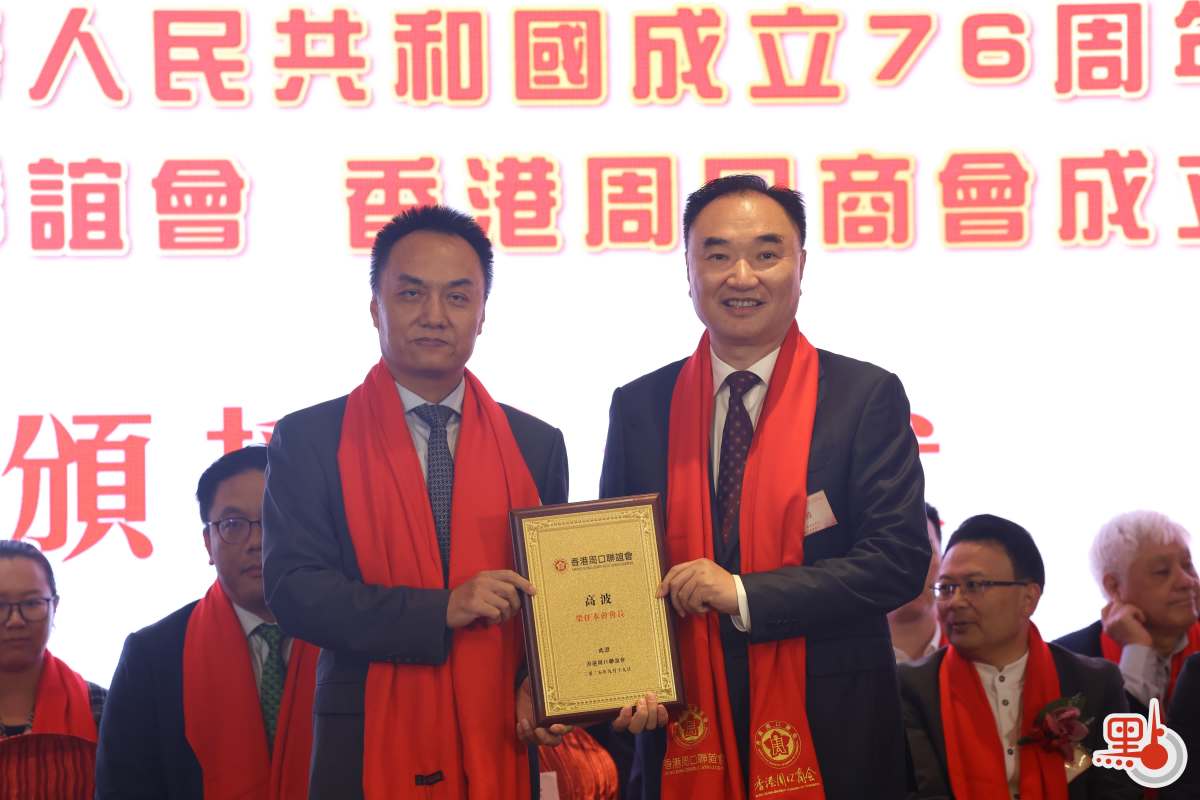 【點新聞報道】香港周口聯誼會及香港周口商會今日(19日)在港舉辦「慶祝中華人民共和國成立76周年暨香港周口聯誼會與香港周口商會成立儀式暨首屆理事會就職典禮」。主禮嘉賓包括香港特區政府商務及經濟發展局副局長陳百里,民政及青年事務局副局長梁宏正,港區全國人大代表召集人、立法會議員陳勇,周口市委常委、統戰部部長皇甫立新,香港周口聯誼會及香港周口商會會長高波等。