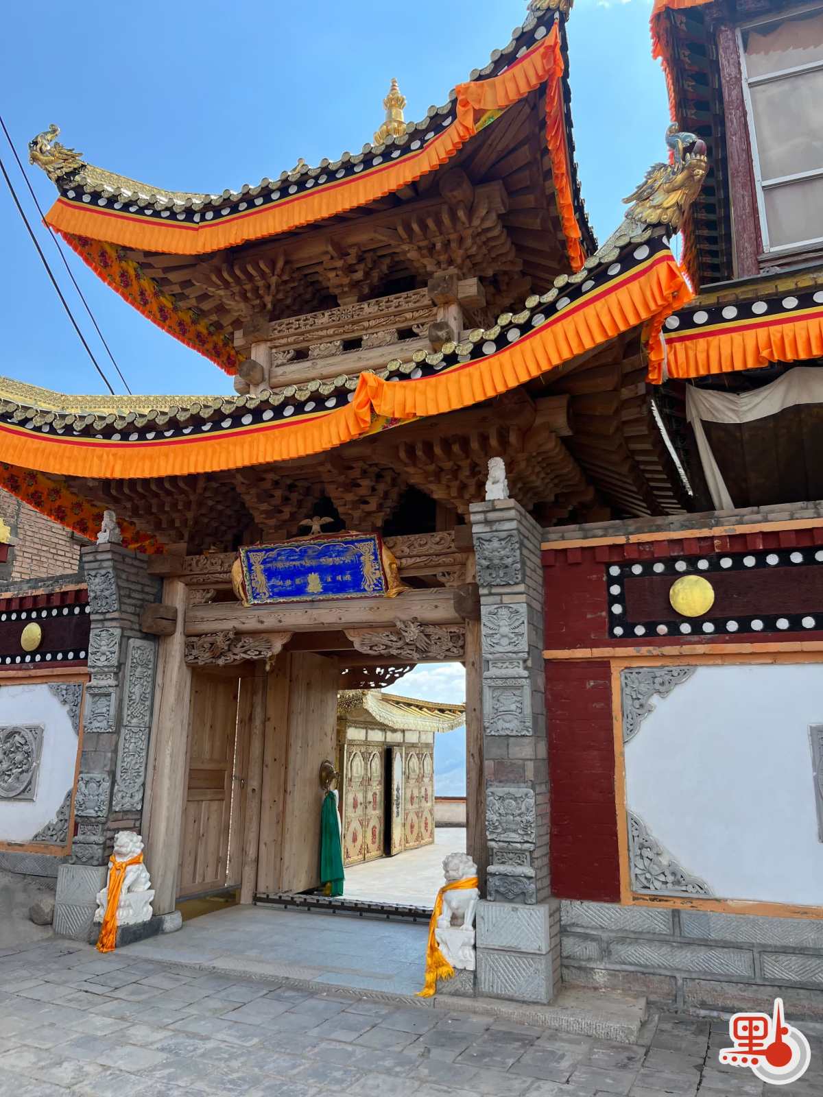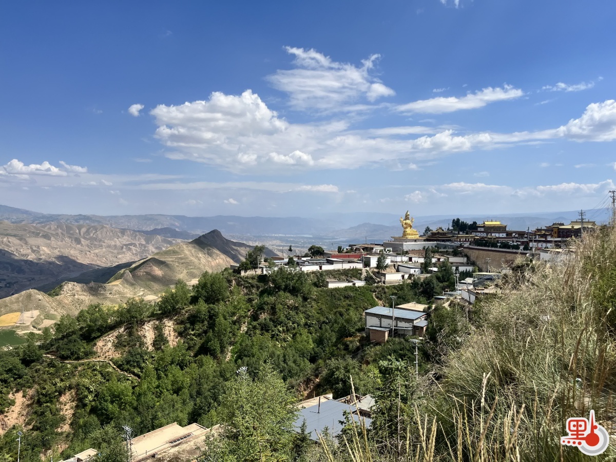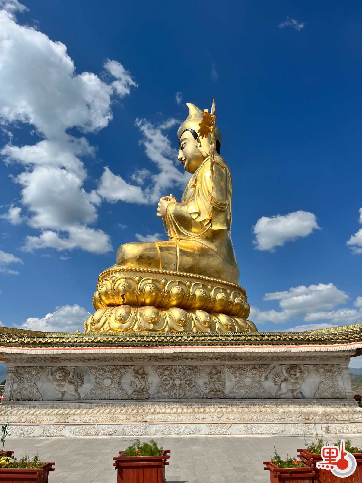 兩寺的直線距離雖然只有40多公里,但中間隔着山,開車需要繞行。近2個小時的車程,一百多公里的蜿蜒跋涉,是對耐心與車技的雙重考驗。當夏瓊寺終於出現在視野盡頭,它如神鷹棲息於陡峭山崖之巔,甚有氣派。山頂一座巨大的鎏金佛像,在高原熾烈的陽光下閃耀着光芒,遠遠就看見。從山腰通往山頂的路迂迴曲折,一側是嶙峋絕壁,另一側是萬丈深淵,我手握方向盤,每次轉彎心中都惴惴然,跟自己說:「正如流傳千年的史詩裏,英雄都必須經過重重險阻。」