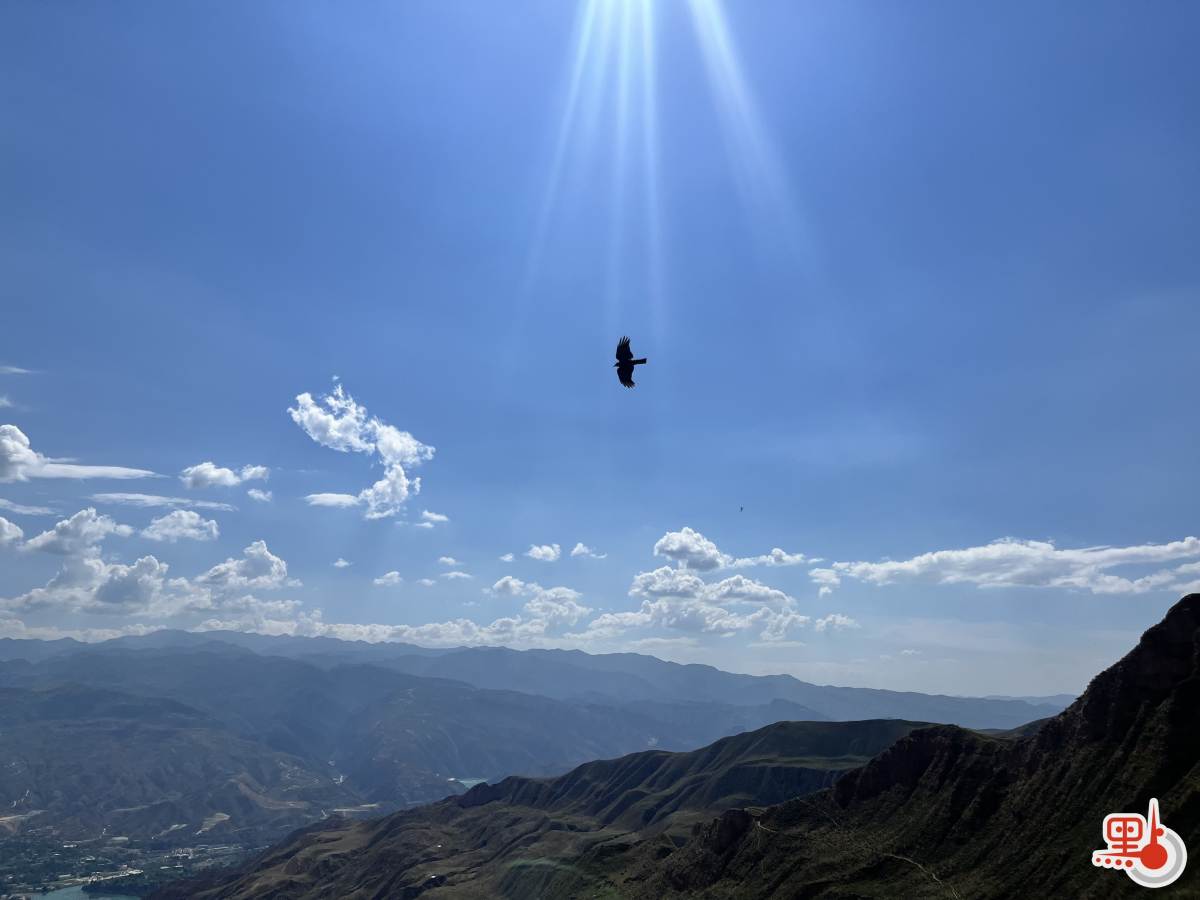 凝視着這絕美的景色,她讓我覺得旅途的奔波、誤機的懊惱、懸崖的驚險,都在頃刻消散。難怪世人都說大地與自然能療癒塵世俗事。天地之間只我一人佇立,良久,任憑山風吹拂,浸潤在這片攝人心魄的蔚藍裏。頭頂,幾隻禿鷹乘着氣流在碧空中優雅盤旋,巨大的翅膀掠過天際,與遠山白雲構成一幅壯闊蒼茫的塞外風光。正如莊子所言:「天地有大美而不言。」