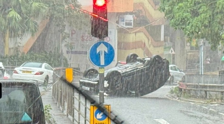救護人員接報到場,司機報稱受傷,經由救護車送往聯合醫院治理。警方正調查事故原因。由圖片可見,涉事私家車四輪朝天,擋風玻璃碎裂,碎片與其他零件散落在馬路。
